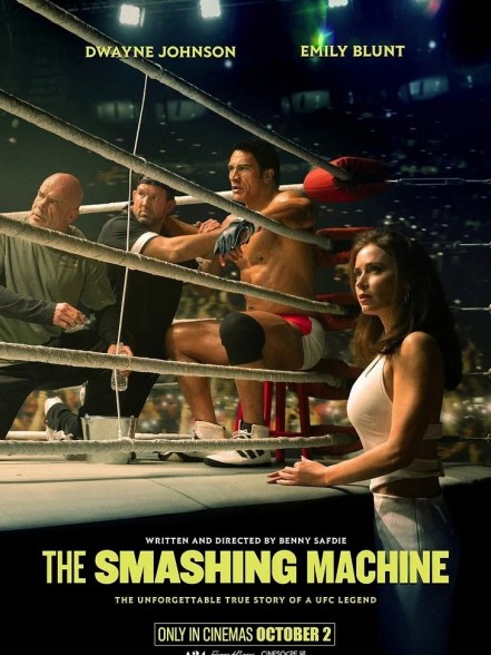 Dwayne Johnson est Mark Kerr, légende du MMA des années 90, surnommé « The Smashing Machine » tandis qu’Emily Blunt incarne son épouse, Dawn Staples